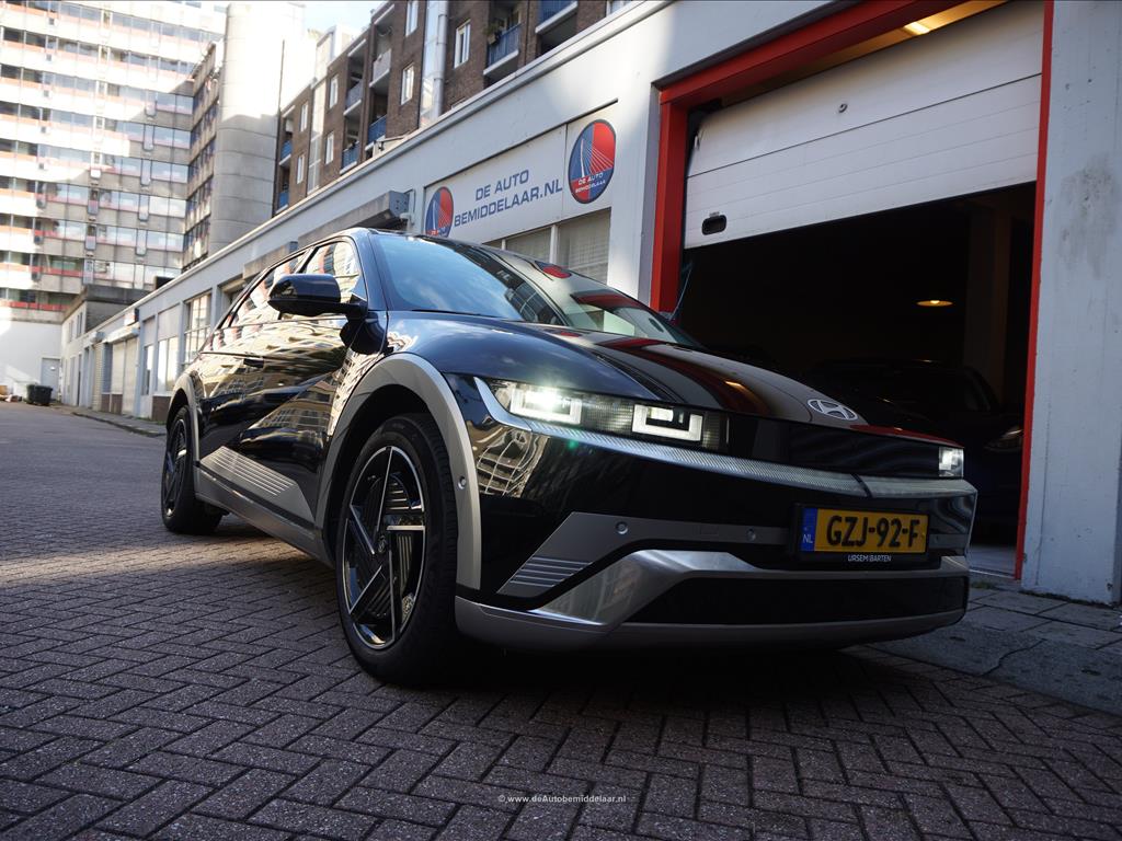 Hyundai IONIQ 5 84 kWh Lounge | BTW incl. | Nieuwprijs ca € 57.200,- | Fabrieksgarantie 12/2029 | Accugarantie 12/2032 of 160.000km | Vollederen interieur | Electrisch bedienbare stoelen met geheugen, stoelverwarming en stoelventilatie | Verwarmd stuurwiel | Head Up Display | Adaptieve cruise control + Lane departure met stuurcorrectie | Sfeerverlichting | APPLE Carplay/ Android Auto | Premium audio met DAB | 360 (TOPVIEW) camera | Virtual cockpit | achterbank elektrisch neerklapbaar, achterbank in delen neerklapbaar, achterruitverwarming, achterstoelen elektrisch verstelbaar, achterstoelen verwarmd, achteruitrij assistent, adaptief demping systeem, airco automatisch, alarm klasse 1(startblokkering), Anti Blokkeer Systeem, Apple Carplay/Android Auto, armsteun voor, audio installatie premium, automatische snelheidsbegrenzing ISA, autonome parkeerfunctie, Autonomous Emergency Braking, bagagedek, bagage-scheidingsnet, bandenspanningscontrolesysteem, bestuurdersairbag, binnenspiegel automatisch dimmend, Bluetooth, bots waarschuwing systeem, buitenspiegels elektrisch inklapbaar, buitenspiegels elektrisch verstel- en verwarmbaar, buitenspiegels in andere kleur, connected services, cruise control adaptief met Stop&Go en stuurhulp, DAB, dakspoiler, dimlichten automatisch, dodehoekdetectie met correctie, draadloze telefoonlader, elektrisch bedienbare achterklep, elektrisch verstelb. bestuurdersstoel met geheugen, elektrisch verstelb. passagiersstoel met geheugen, elektrische ramen voor en achter, Elektronisch Stabiliteits Programma, extra getint glas achter, geluidsisolerend glas, grootlichtassistent, head-up display, hill hold functie, hoofd airbag(s) achter, hoofd airbag(s) voor, interieur voorverwarming/(koeling), keyless entry, keyless start, kruisend verkeer detectie, LED achterlichten, LED dagrijverlichting, LED koplampen, lederen bekleding, lendesteun(en) elektrisch verstelbaar, lichtmetalen velgen 20inch, metaalkleur, motorgeluid simulator, multimedia scherm standaard, multimedia-voorbereiding, navigatiesysteem full map, oplaadmogelijkheid, parkeersensor achter, parkeersensor voor, passagiersairbag, regensensor, rijstrooksensor met correctie, rondomzicht camera, schakelpaddles, spraakbediening, stuur leder, stuur multifunctioneel, stuur verstelbaar, stuur verwarmd, stuurbekrachtiging, Vehicle-to-load , verlichte grille/strip, vervolgbotsing preventie, volledig digitaal instrumentenpaneel, voorstoelen in hoogte verstelbaar, voorstoelen verwarmd en geventileerd, warmtepomp, warmtewerende achterruit, warmtewerende voorruit, zelfstandige rijstrookwissel, zij airbag(s) voor, zonnescherm zijruiten.
